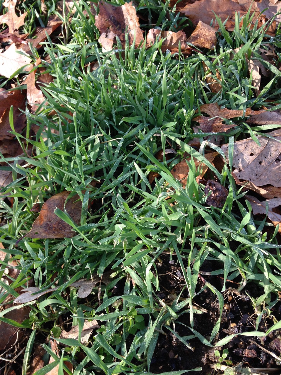 We have used winter rye (Secale cereale) as a cover crop because it can add a great deal of organic matter to a depleted bed, especially when it is combined with a nitrogen-fixing legume such as crimson clover and/or field peas. Winter rye can germinate at lower temperatures than the other cover crops we use, and therefore can be successfully planted as late as the end of October. To reap its maximum benefit, it is better to let it grow until it reaches its full height and flowers, then cut it down to incorporate into the bed, but this is labor intensive and delays planting the following year. If not allowed to flower before turning under, winter rye will keep growing back and require repeated cultivation to break down. We now rarely use winter rye alone. When needed, we prefer to use it in a cover crop mixture containing several grains and legumes for earlier and easier soil preparation.